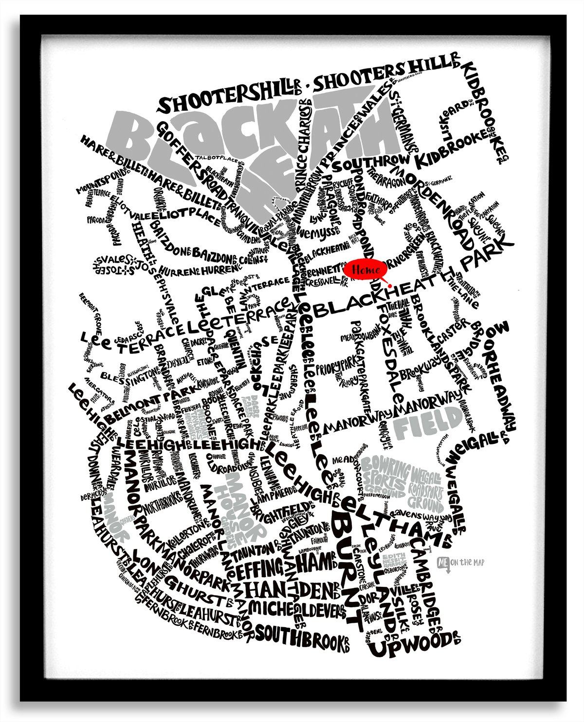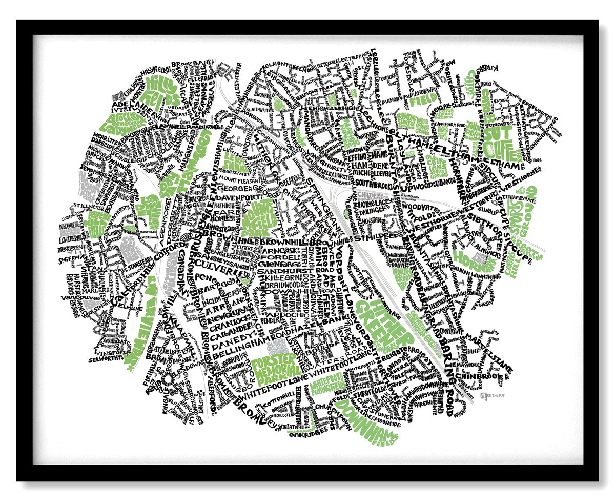 Hither Green SE13 & Lee Green SE12 Typographic Street Map | Me