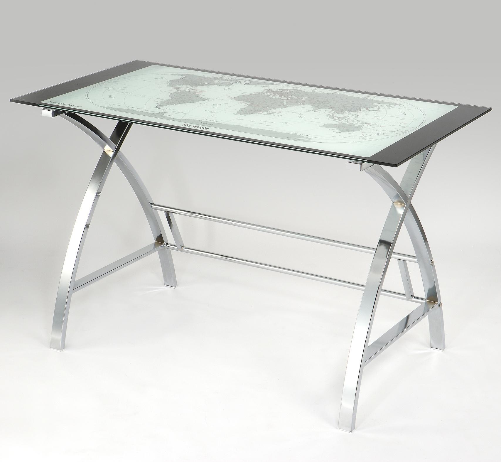 Christopher Modern World Map Metal Computer Desk Silver Powell